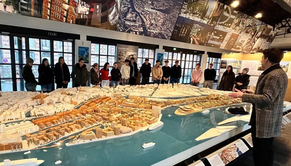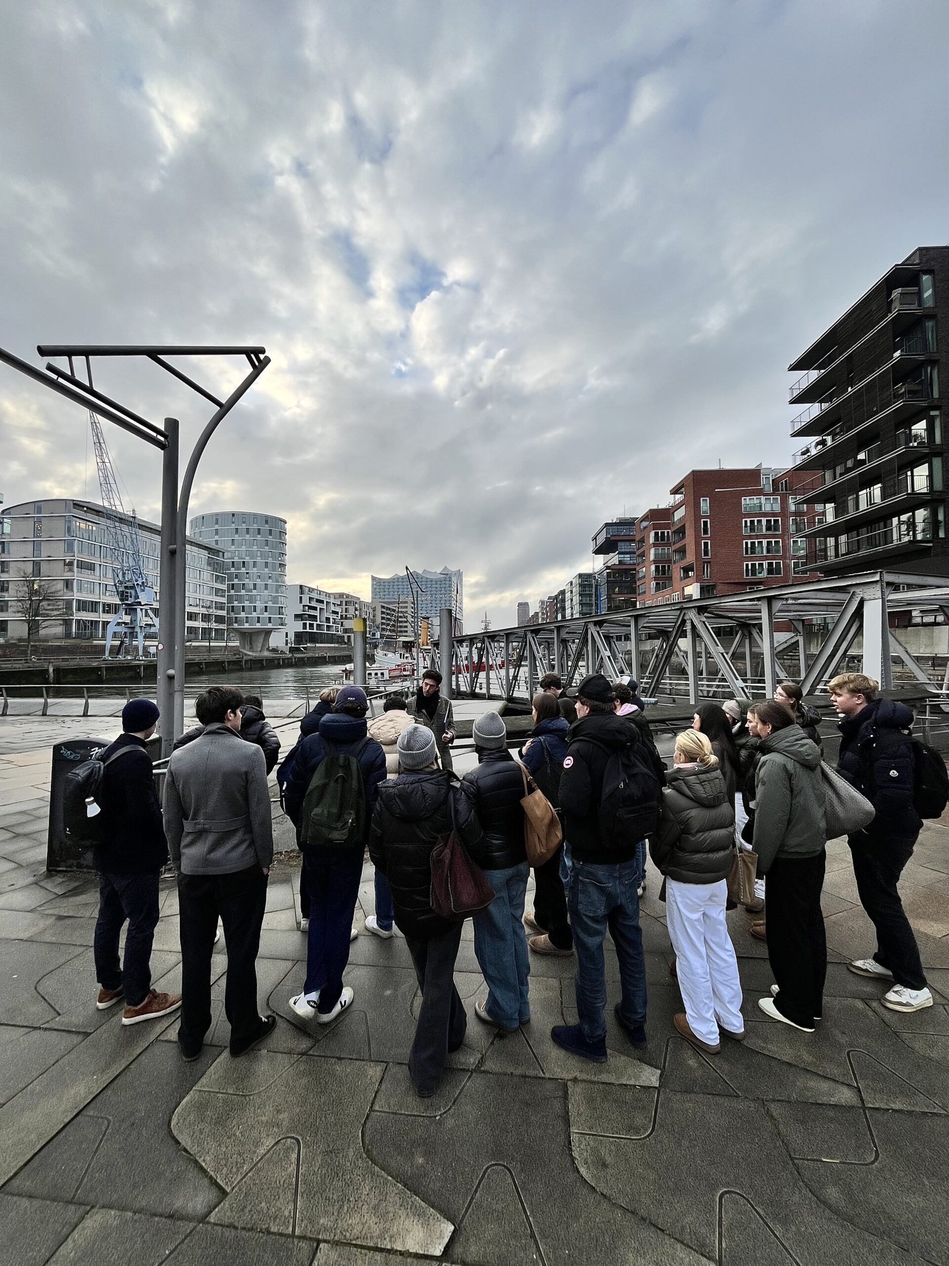 Am 4.12.2025 waren wir, der Geokurs S1 mit Herrn Witt, auf einer Exkursion in der HafenCity, wo wir eine Führung von Thorsten Gödtel vom HafenCity InfoCenter erhalten haben. Das Thema war die Entwicklung des Gebietes der HafenCity in den letzten Jahrzehnten – vom ehemaligen Hafengebiet hin zu einem neuen Stadtteil mit Wohnungen und Büros.