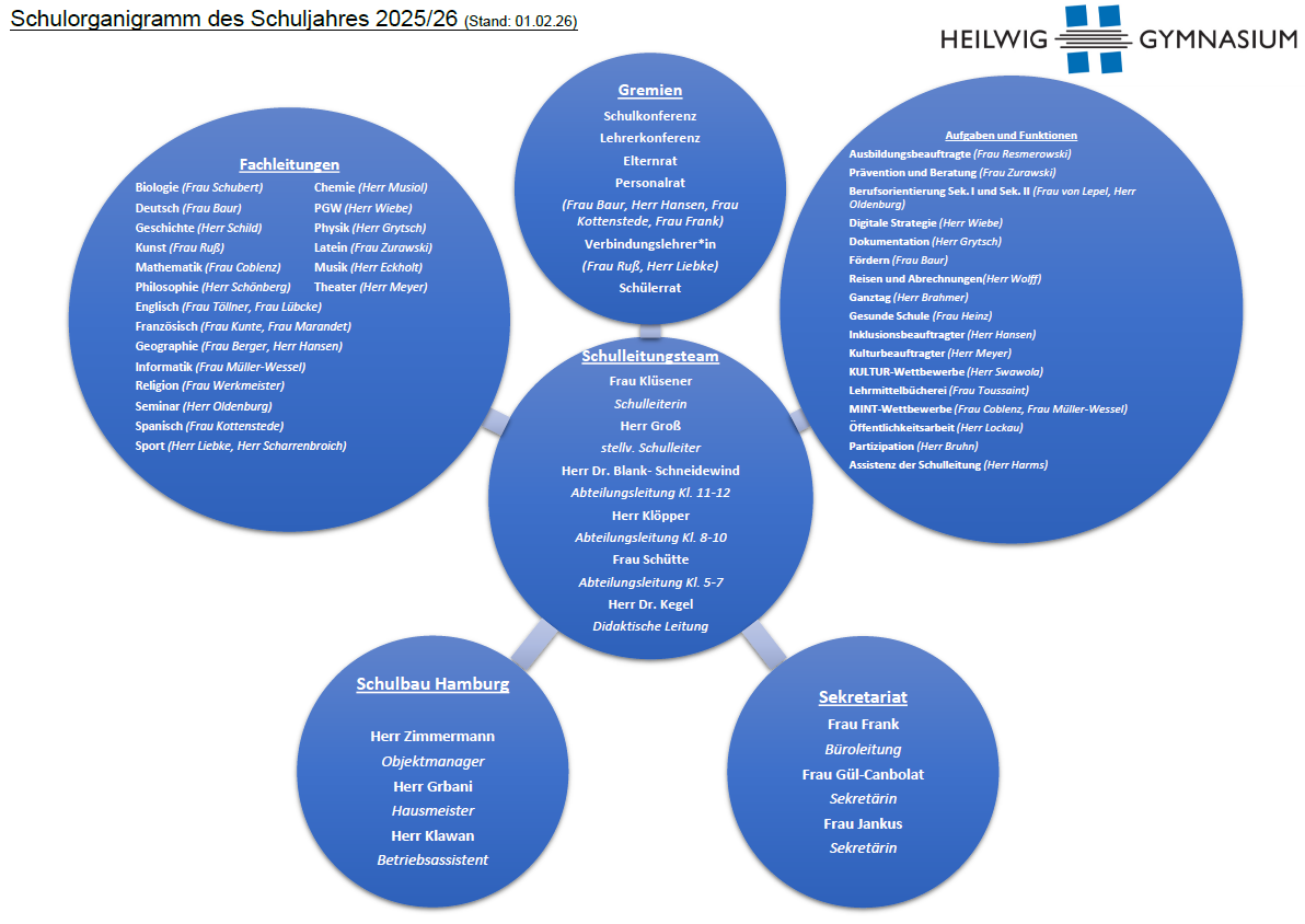 Hier finden Sie einen Überblick über unser Kollegium. Sie können jedes Mitglied des Kollegiums per E-Mail erreichen: vorname.nachname@heilwig.hamburg.de (Umlaute bitte in einzelne Vokale auflösen).