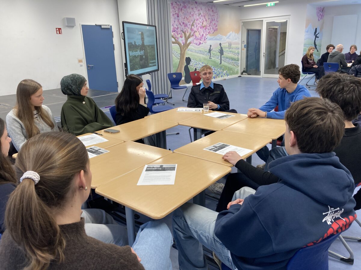 Uns hat an den Gesprächen besonders gut gefallen, dass es nicht nur „die eine Meinung“ zur Wehrpflicht gab, sondern viele verschiedene Perspektiven. Am Ende der Veranstaltung kam bei einer Abstimmung heraus, dass die Mehrheit von uns Schüler*innen das Gefühl hat, nicht wirklich in der Wehrpflicht-Debatte gehört zu werden. Genau dafür war das Treffen gut, denn wir haben viele unterschiedliche Ansätze diskutiert.